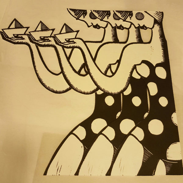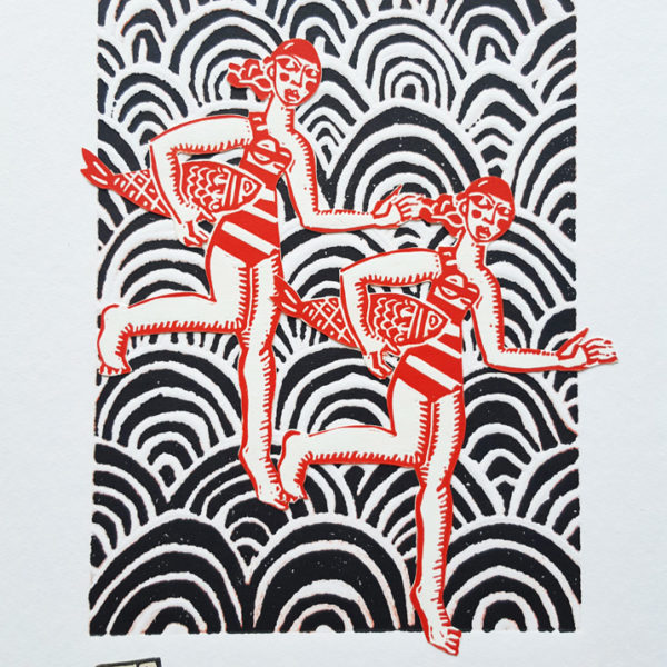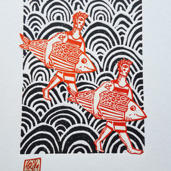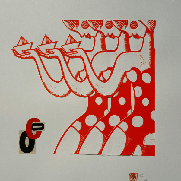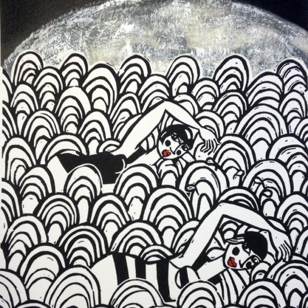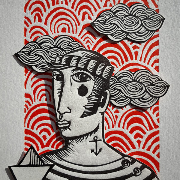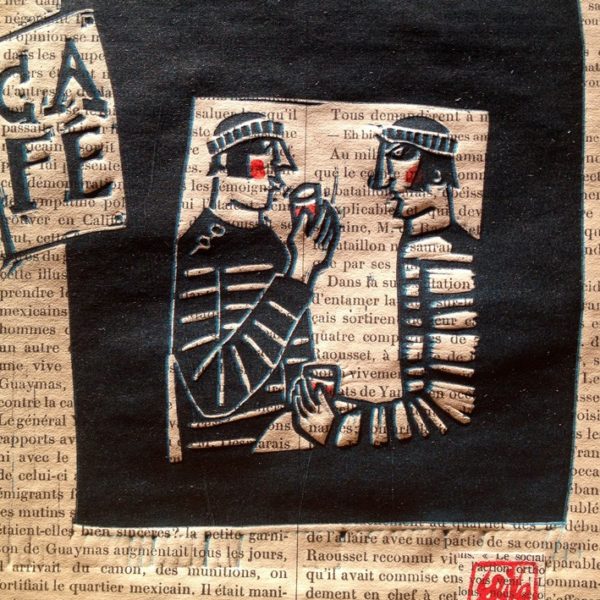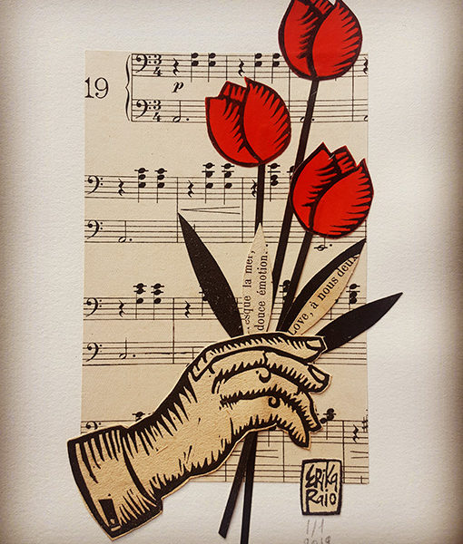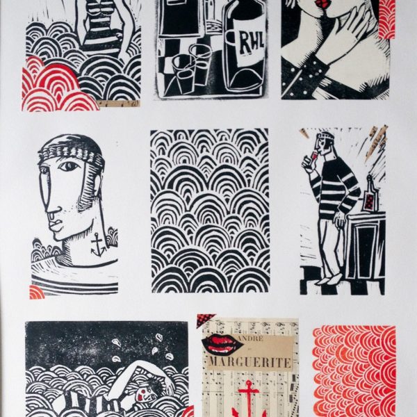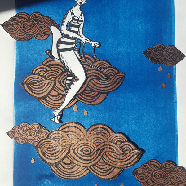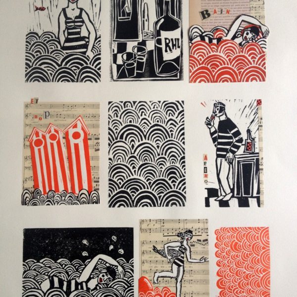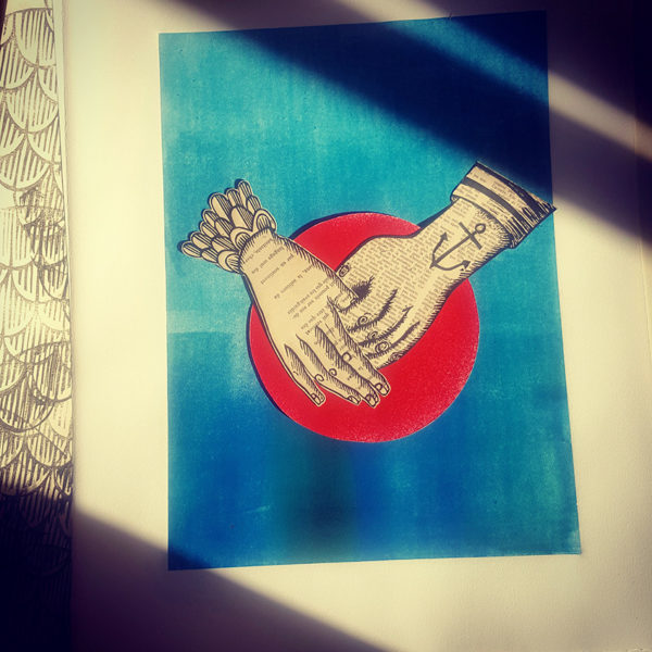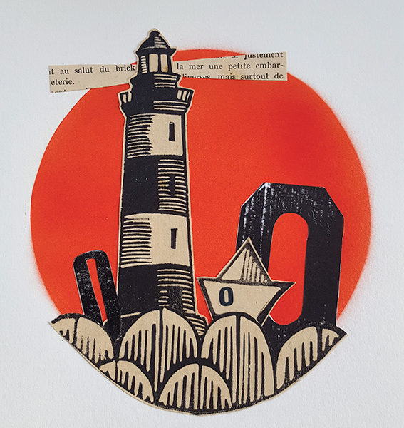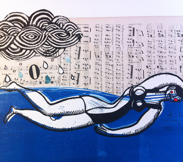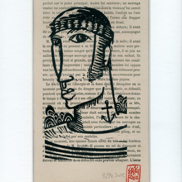 Une part importante de mon travail. J’aime beaucoup imprimer sur des pages de livres anciens aux feuilles jaunies. Cet apport littéraire insuffle ainsi vie et émotion aux personnages.
